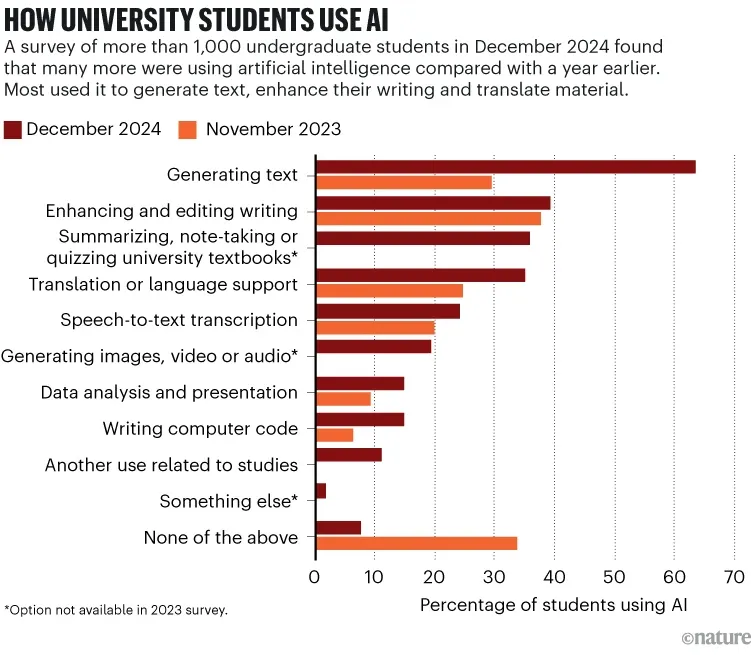 ▷图源:J. Freeman Student Generative AI Survey 2025 (HEPI, 2025)