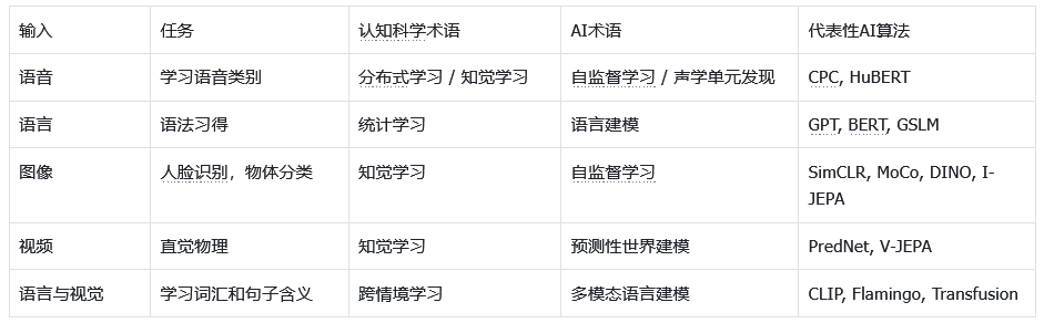 在AI领域,与之对应的是自监督学习(SSL)算法。这类算法同样能够在海量的静态数据集或被动的感官信息流中,提炼出抽象的表征。