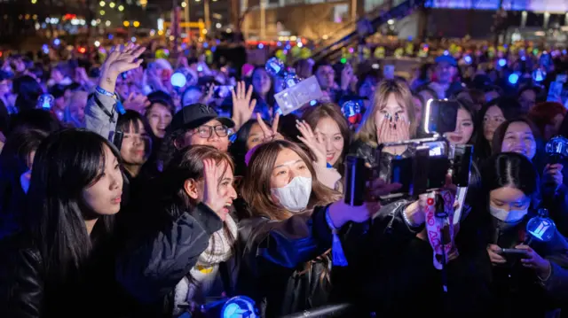 图像来源,BIGHIT MUSIC AND NETFLIX,数以万计的歌迷从全球各地汇聚首尔,也有不少中国歌迷,但这次巡演并不包括中国大陆。