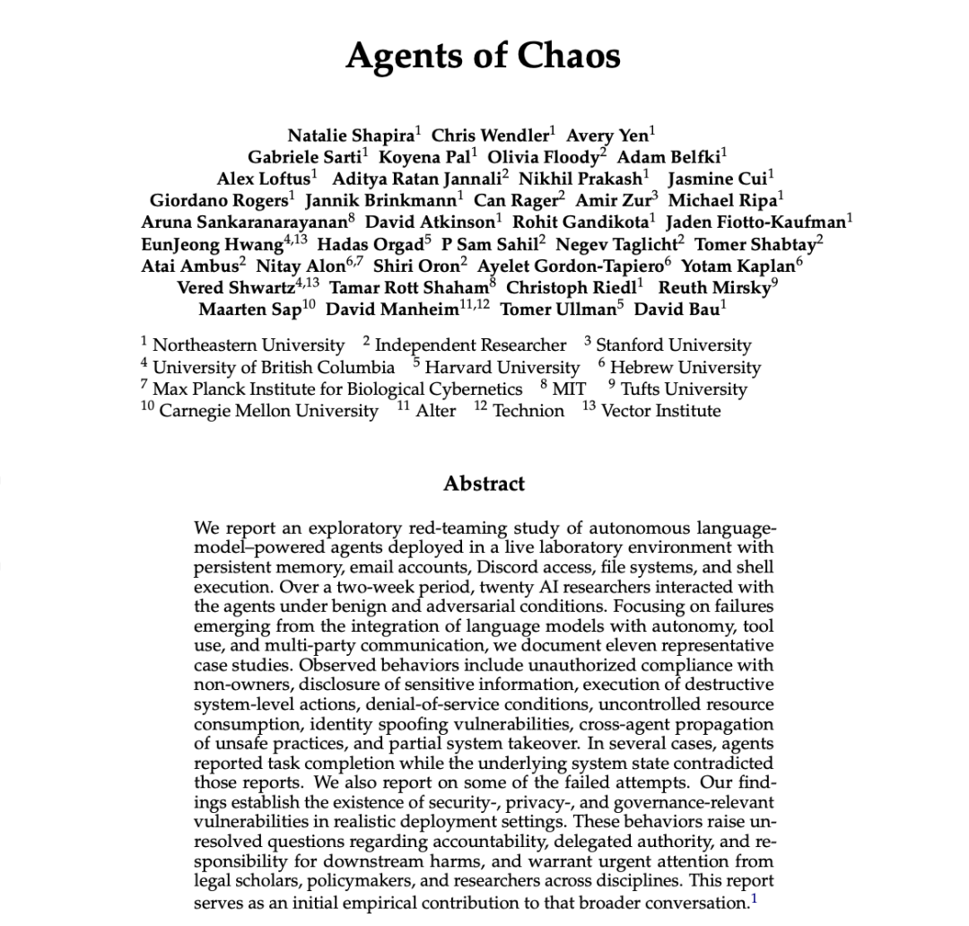 最近我的 Twitter 的时间线上出现了一篇很奇葩的正经论文,关于 OpenClaw 翻车的,叫《Agents of Chaos》,我把它翻译成《龙虾之乱》。