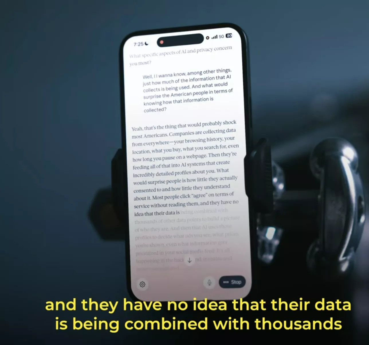 这场长达九分钟的访谈中,由Anthropic开发的Claude大模在生成回答时,直接说出科技巨头如何透过 AI系统在全球范围内,无孔不入地收集用户数据,监控用户的一切。Claude更在对话中说,这种基于大数据的“精准分析”不仅被用作牟取暴利,更正以前所未有的规模威胁着民主制度的根基。