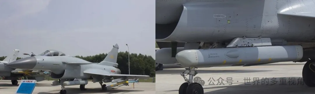 不过,除了2024年那架静态展示机在机腹通过复合挂架带了2枚霹雳-12,其他时候都没见过这个挂点带武器。