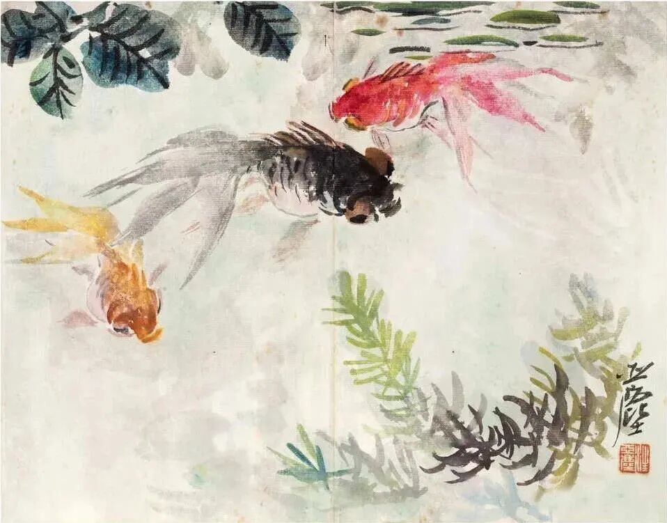 汪亚尘他除了擅长金鱼题材外,对于其它如菊花、牡丹荷花等花卉题材也展现出惊人的才华。郑逸梅曾说:“大家都知道亚尘的国画以金鱼为最胜,实则他所给的花竹翎毛,都很潇洒有致,惟山水少见而已……”在“汪金鱼”背后,隐约存在另一个我们不深知的花鸟大家汪亚尘。