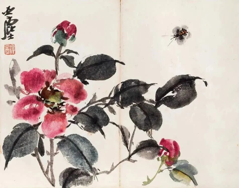 汪亚尘的花卉作品,早年与晚年的都特别精彩。早年作品,笔墨精湛,格调雅致;晚年的作品,色彩缤纷,天真烂漫。倒是中间的探索过程,作品良莠杂陈。他的此类作品的造型设色,完全把内心对自然的强烈感受和自己生活道路的情感体验有机的结合在一起,创造出了这样显著的艺术风格。