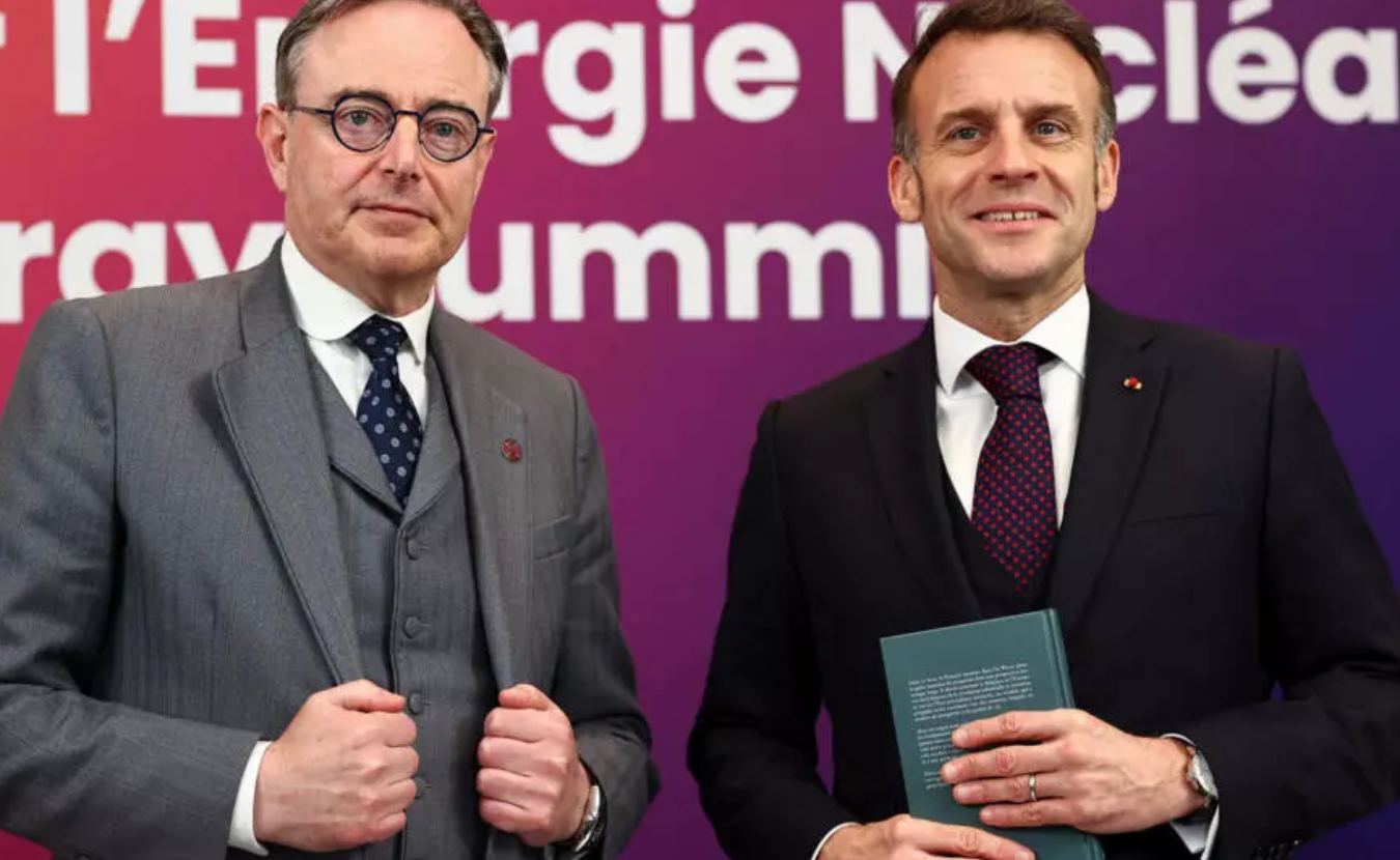 2026年3月10日,在法国巴黎举行的国际原子能机构核能峰会上,法国总统埃马纽埃尔·马克龙与比利时首相巴特·德韦弗合影留念。 REUTERS - Abdul Saboor