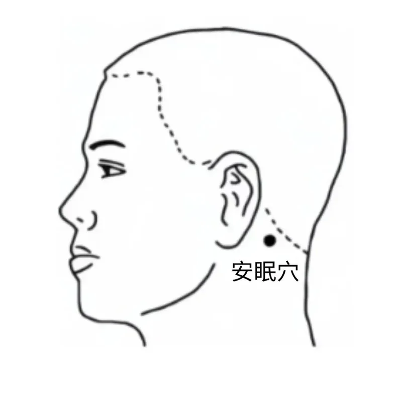 01、按安眠穴:耳垂后凹陷处与风池连线的中点。