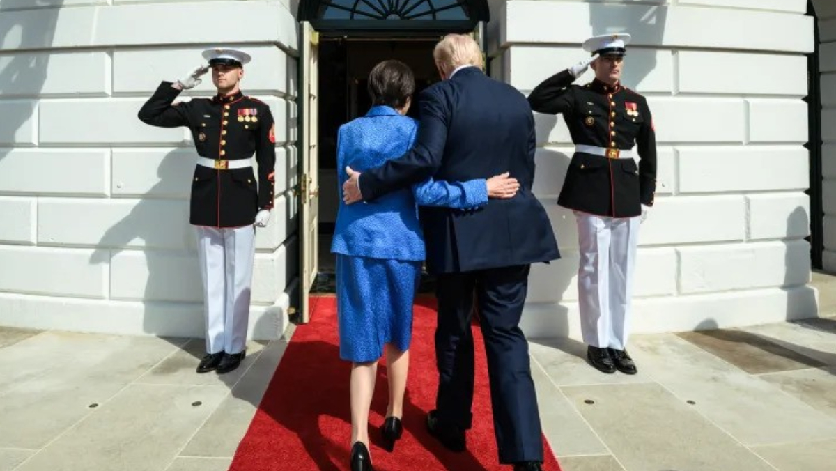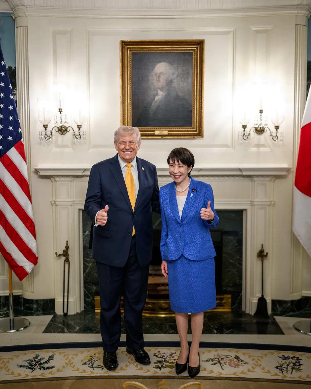 照片显示,川普当天在白宫大楼外迎接高市时,两人相拥步入白宫,展现亲密情谊。之后两人也在白宫椭圆形办公室合影。