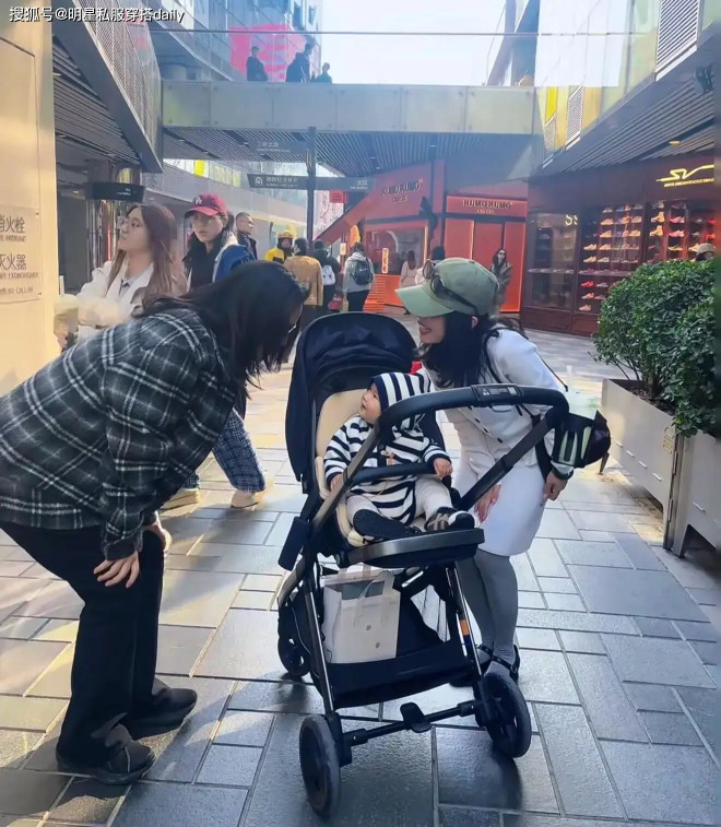 在穿搭上,她看起来非常接地气!格纹外套搭配一条黑色裤子,脚踩黑色运动鞋,和小朋友互动尽显温柔!