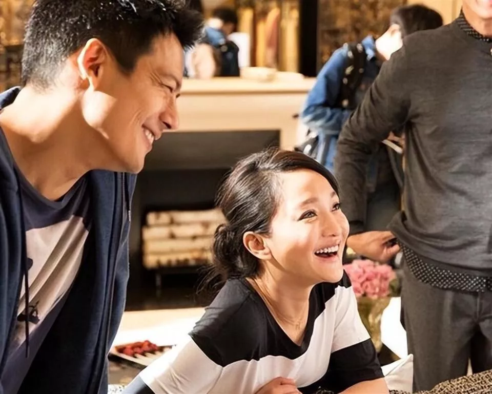 高圣远当着所有人的面说“是爱让我们走到一起”,周迅笑得也挺开心。