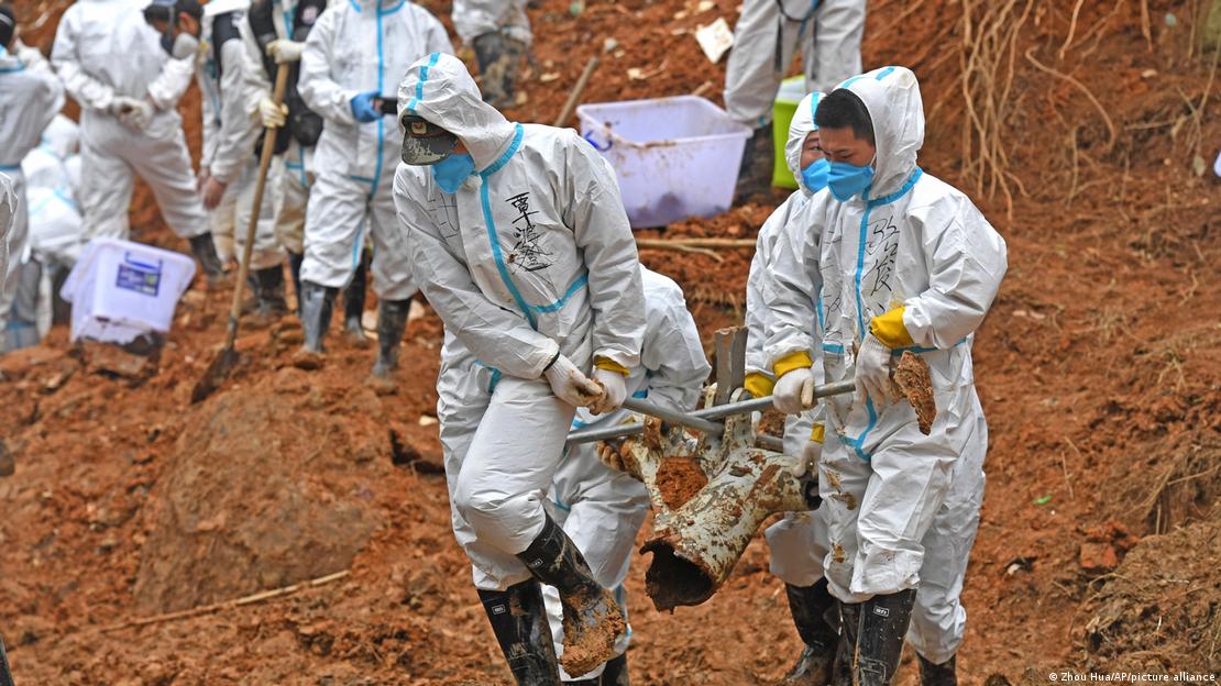 事故发生后不久,搜寻人员在坠机地点找到了飞机的黑匣子。图像来源: Zhou Hua/AP/picture alliance