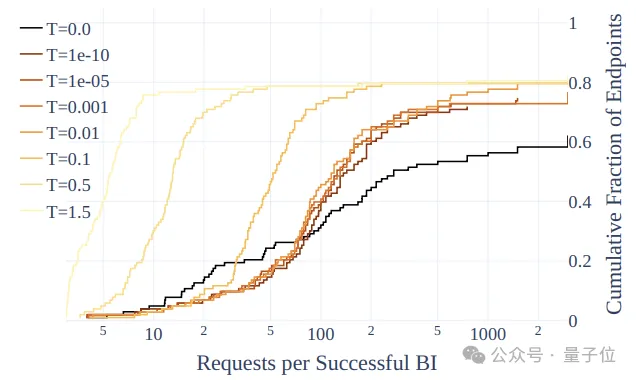 然而,只要存在两个及以上逻辑得分持平的Token,检测信噪比就会随着Temperature降低而急剧发散。