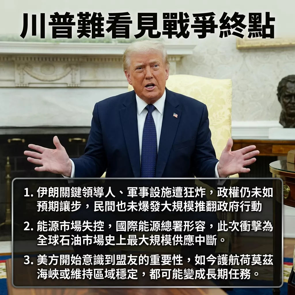 报导进一步指出,川普过去在其他军事行动中的快速成果,强化其对美军能力的信心,也导致对伊朗情势的误判。如今战局发展显示,这场原被描述为短期行动的战争,已难以看到明确终点。