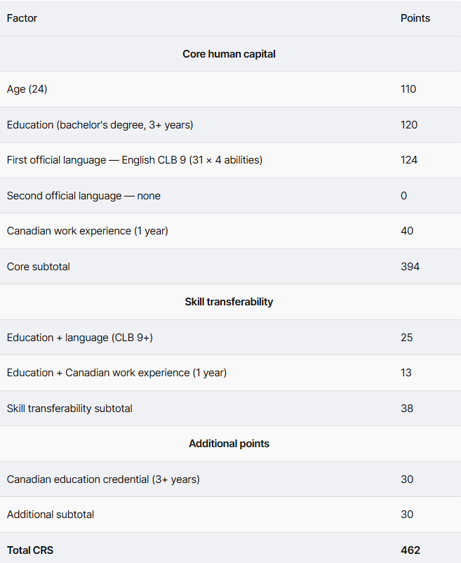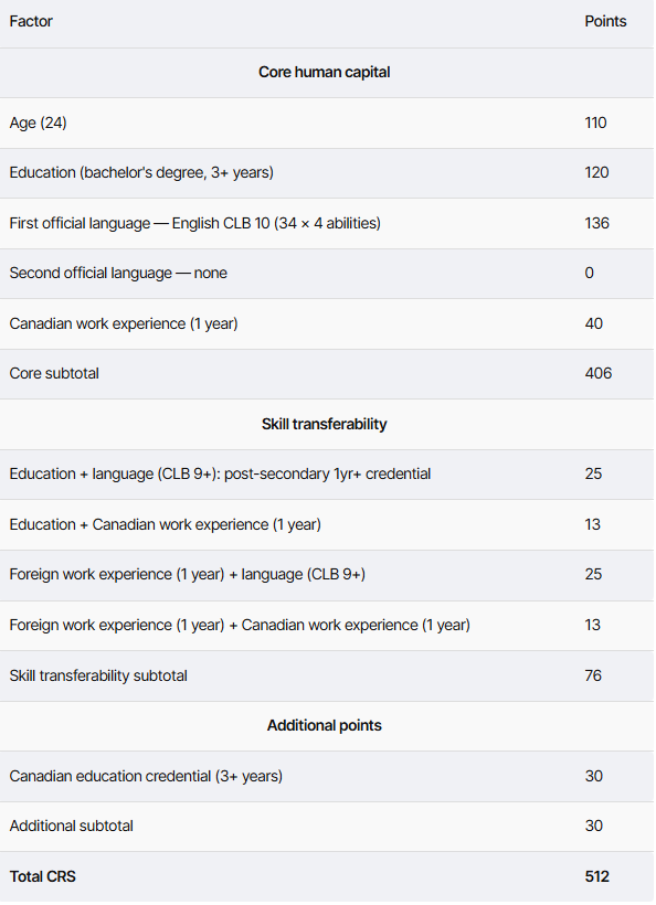 Priya在来加拿大之前就研究了快速通道系统(Express Entry),并了解这是大多数国际毕业生获得PR身份的途径。她查看综合排名系统(CRS)——用于在快速通道池中对候选人进行排名的评分系统——并规划出哪些因素是她可以控制的。年龄和教育水平基本是固定的,但语言能力、工作经验以及是否符合类别邀请(category-based draw)资格则不是。她根据所学做出四个决定。