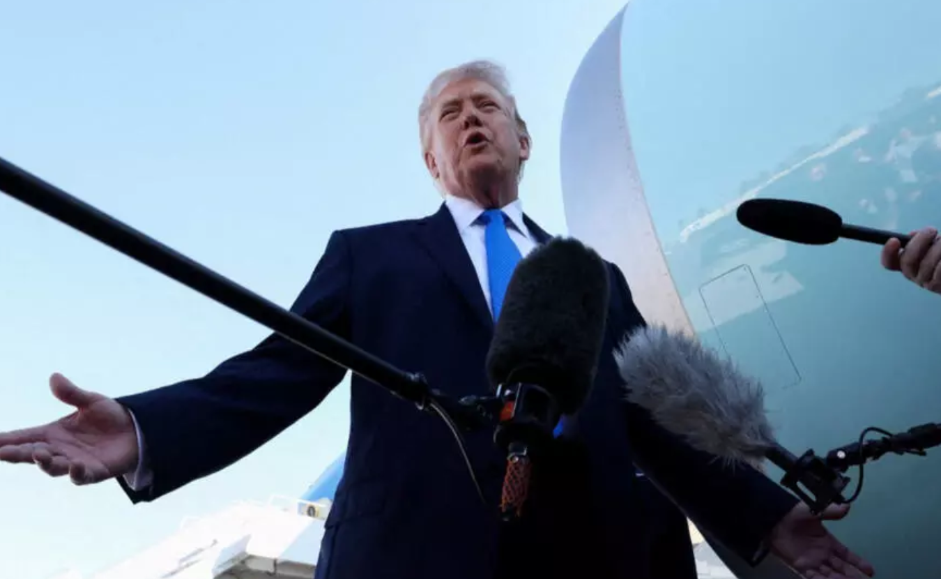 美国总统特朗普3月23日搭乘专机从佛罗里达起飞前,在专机前召开记者会。 © 路透社