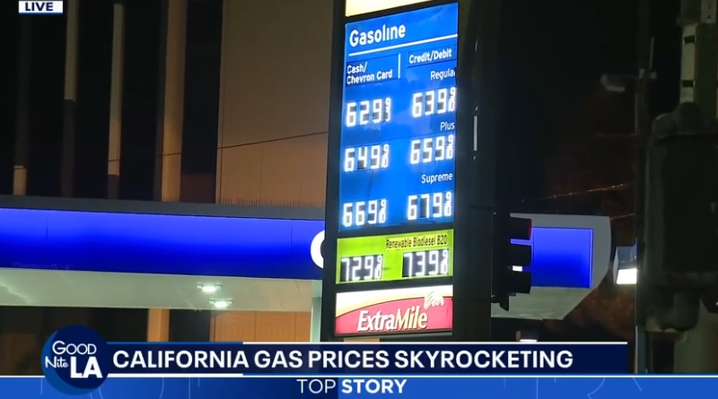 与此同时,洛杉矶市中心一处Chevron加油站的油价已接近每加仑9美元。