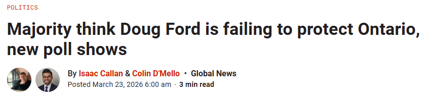 “在应对特朗普和省际贸易方面,福特的表现跟任何人差不多,”Darrell Bricker解释说,“但当涉及到民众日常生活实际问题时,民调数据就很令人担忧。”