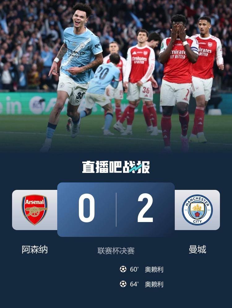 曼城2-0阿森纳夺得联赛杯国际体育