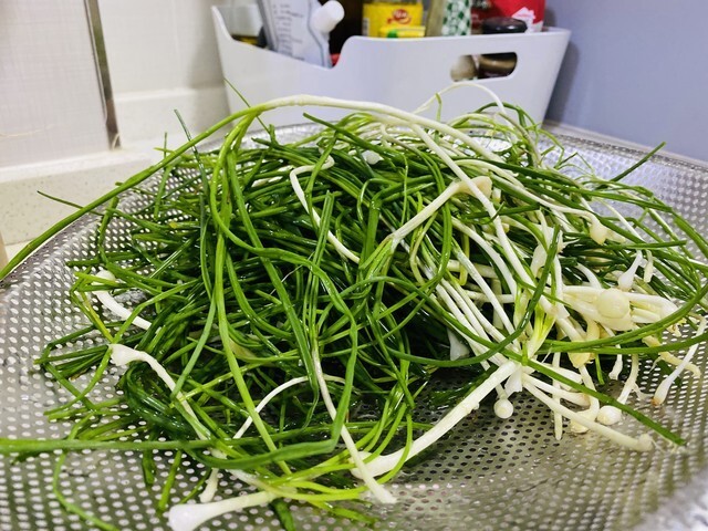 有的人春天容易感冒,感觉鼻子不通、有点着凉,切点野葱煮碗汤喝下去,发发汗,比捂被子还管用。野葱不仅能杀菌,还能促进消化、祛除体内寒湿,对于脾胃虚寒的人来说,是难得的时令宝贝。