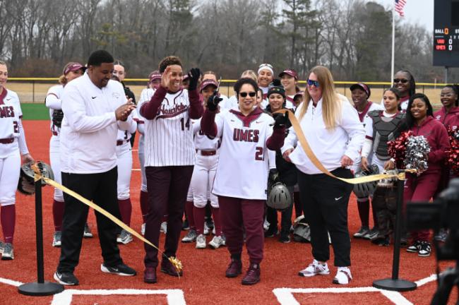 马里兰大学东岸分校校长海蒂・安德森手持剪刀。她利用斯科特的捐赠来充实学校的捐赠基金,并为其学术课程进行战略规划。图片来源:UNIVERSITY OF MARYLAND EASTERN SHORE