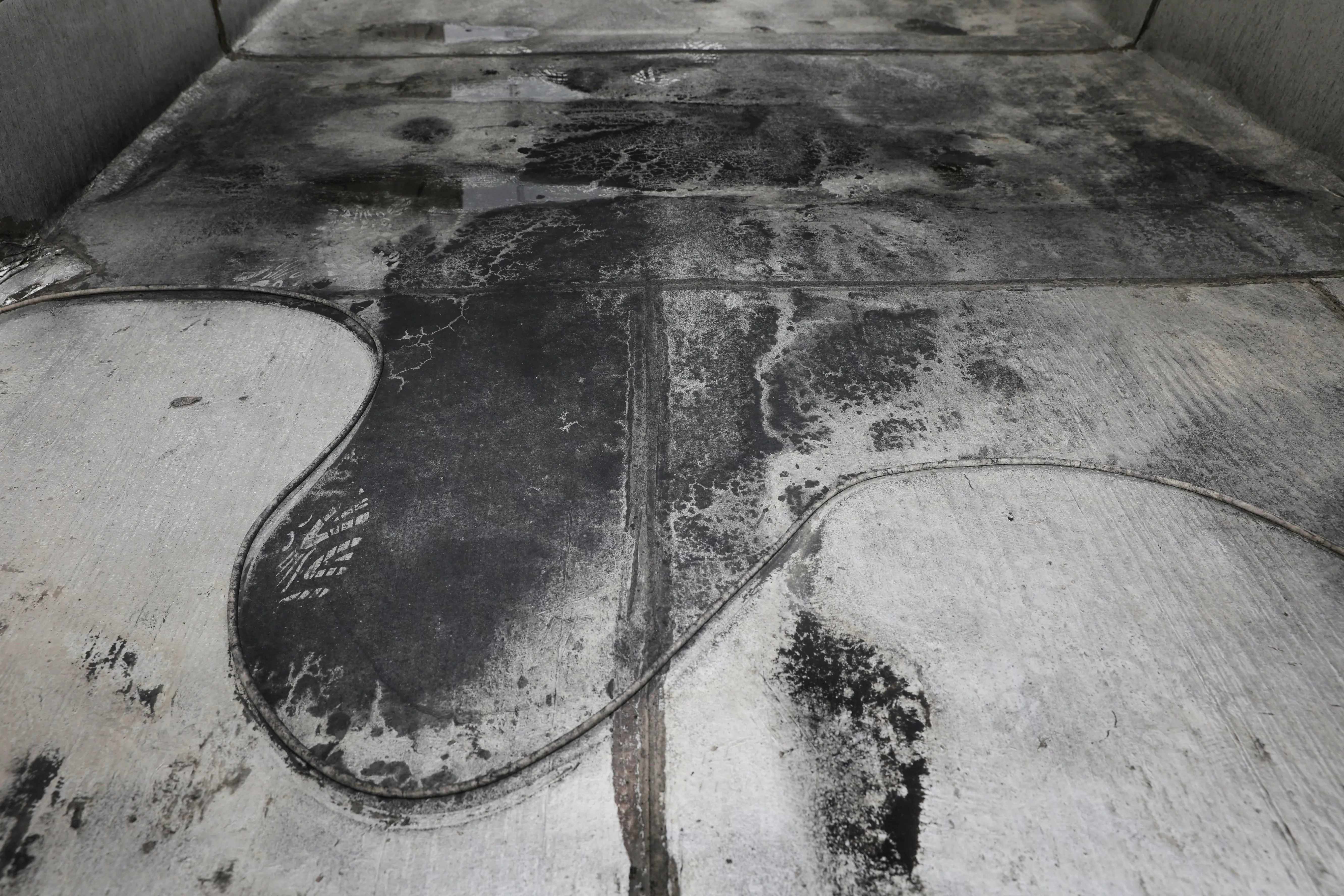2026年3月10日,伊朗首都德黑兰,在美以冲突期间,据报道,油罐遭到袭击后,地面上留下黑色烟尘,并伴有黑色雨滴。(Reuters)