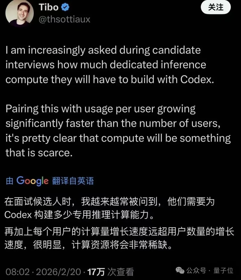 OpenAI Codex工程负责人Thibault Sottiaux最近在X上写道,AI算力正变得越来越稀缺、越来越值钱:
