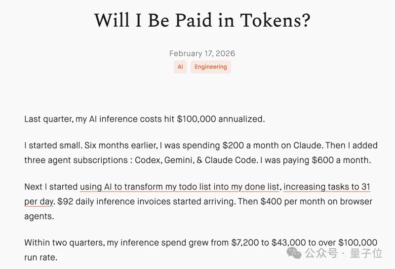半年之内,他的AI推理支出从年化7200美元涨到4.3万美元,再到超过10万美元。