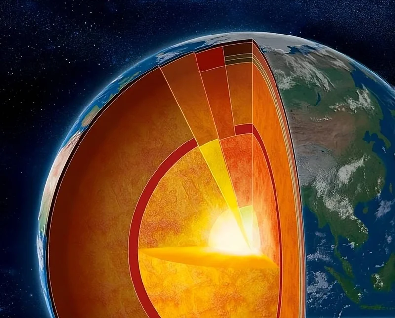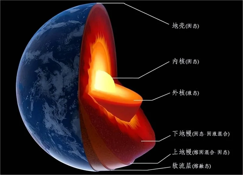 要理解地球为什么会“没电”,我们首先要搞清楚地球的“电”是从哪里来的,我们脚下的大地并不是一块冰冷的实心石头,如果你把地球像切苹果一样切开,你会看到地壳、地幔、液态外核和固态内核,地球的中心温度高达 6000 摄氏度,与太阳表面的温度不相上下。