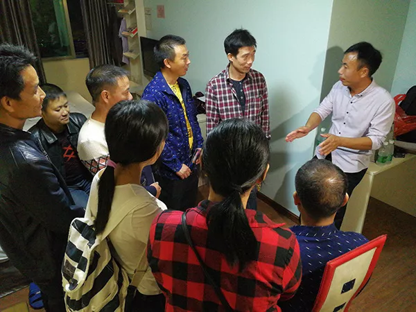 2017年11月,家长们在广州一家旅馆内商议寻找孩子。朱远祥 图