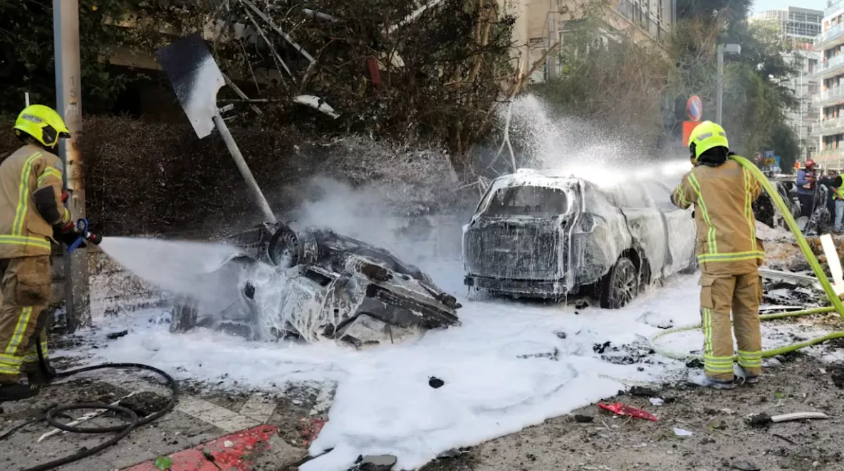 特拉维夫多栋建筑也在攻击中受损,多辆汽车起火燃烧。以色列紧急医疗机构表示,特拉维夫至少出现四个导弹落点,目前已有六人受伤。