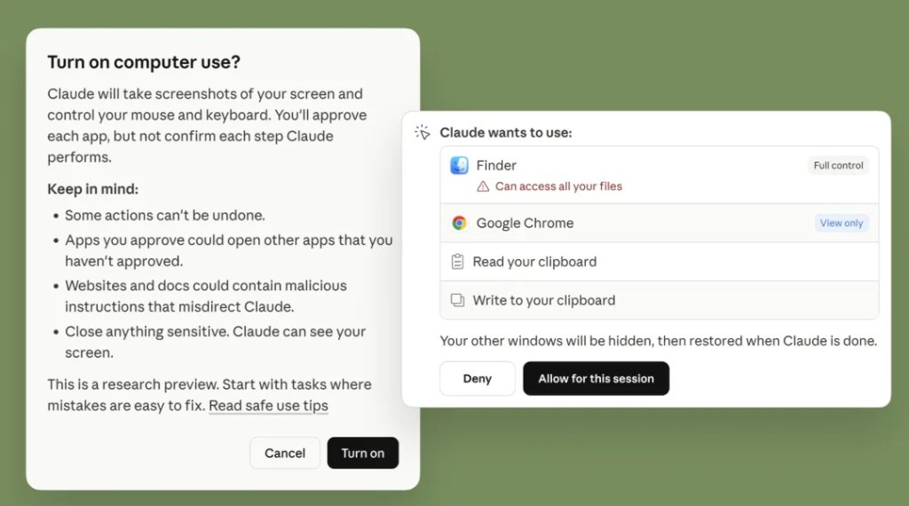 当Claude使用计算机时,其系统会自动扫描模型中的激活以检测提示注入等活动。用户可以随时叫停Claude,且Claude在访问新应用前始终会请求许可。