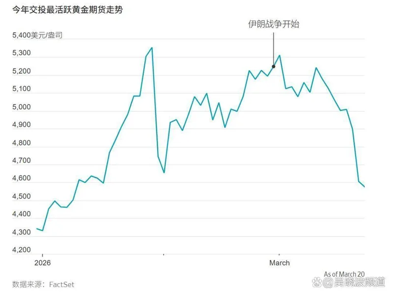 伊朗战争开始后,黄金跌跌不休。图源:华尔街日报