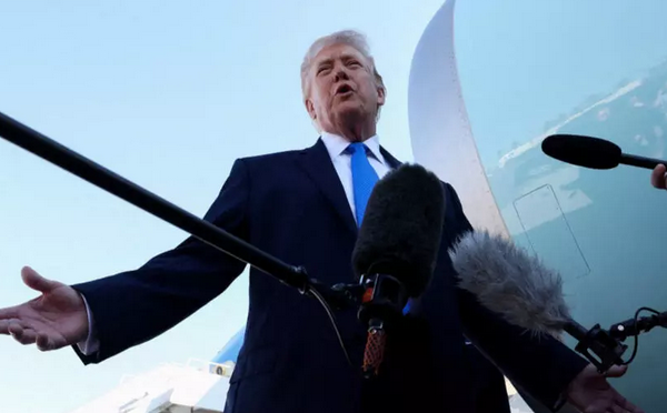 美国总统特朗普3月23日搭乘专机从佛罗里达起飞前,在专机前召开记者会。 © 路透社