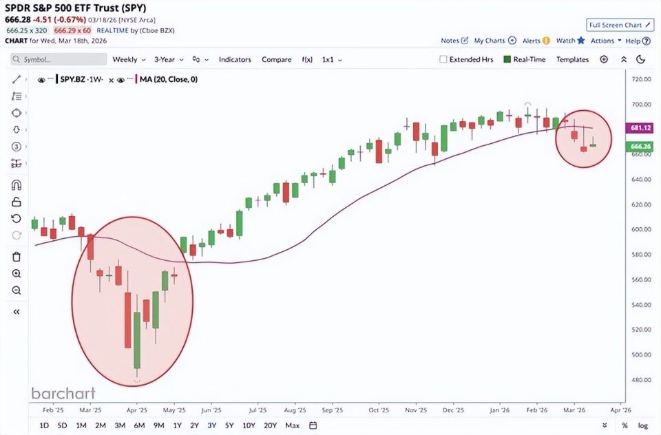 美股标普500指数在技术层面上,已经一只脚踏入了“熊市”的门槛。连续跌破关键均线,这不是偶然的波动,而是资本在用脚投票,对“滞胀”预期的提前逃离。
