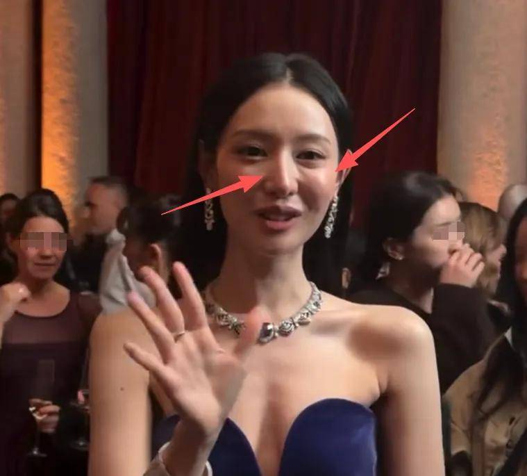 但在外媒的镜头和打光下,国民女神秒变油腻,脸又僵又肿,整个T区和苹果肌都泛着油光。笑起来法令纹很深,一看就是因为肌肉僵硬而被挤出来的。