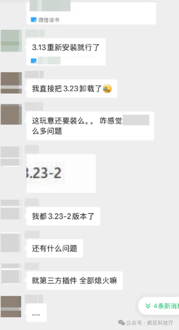 不仅如此,也有用户反馈第三方插件“集体熄火”。