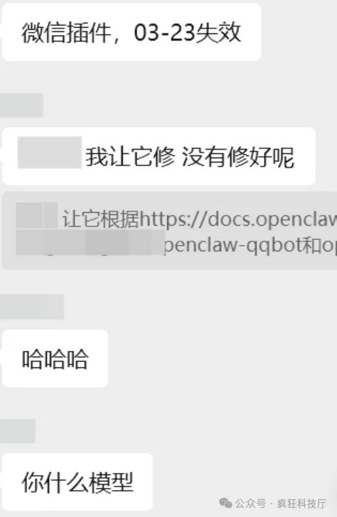 国内的反馈同样不容乐观,多数用户反应微信插件失效,而微信端的ClawBot仅上线不到三天。