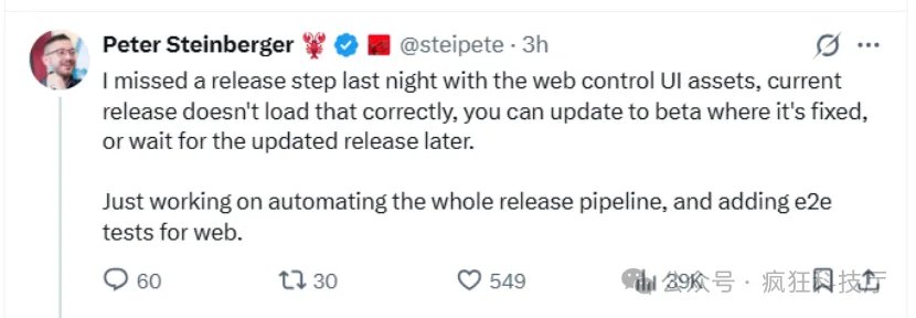 OpenClaw创始人Peter Steinberger也是第一时间出来“认领责任”,并迅速完善。