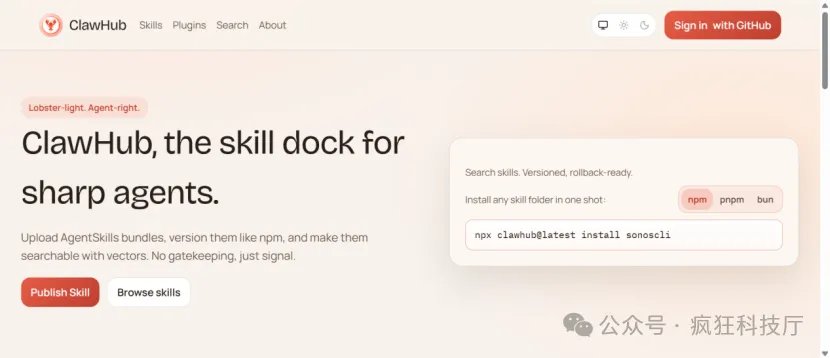 以前装插件全靠npm install,插件质量参差不齐。现在OpenClaw plugins install会优先从官方ClawHub市场找,找不到才去npm。说不定,以后找插件就像逛App Store,官方帮你筛选,再也不用到npm里大海捞针。