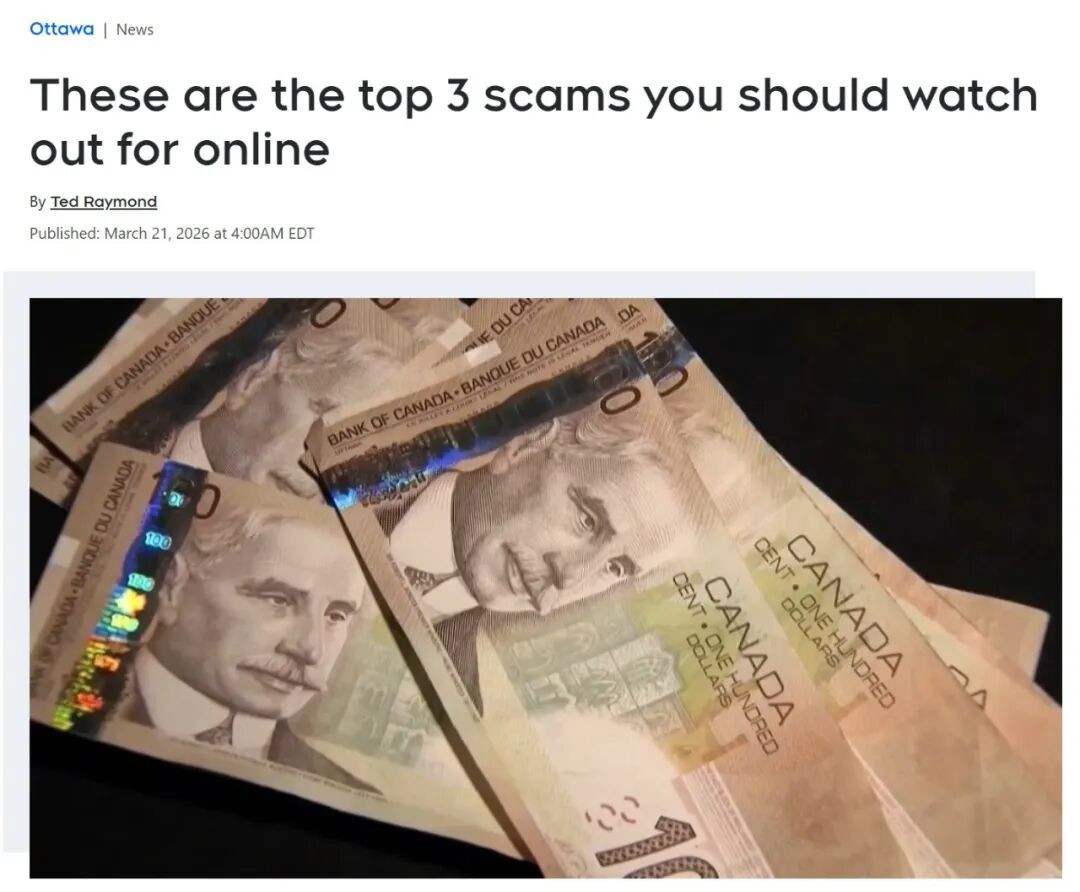 在这个阶段,防诈骗已经不是“提高警惕”这么简单了,而是要默认一个前提:骗子也在进化,而且速度很快。新闻信息来源:https://www.ctvnews.ca/ottawa/article/these-are-the-top-3-scams-you-should-watch-out-for-online/