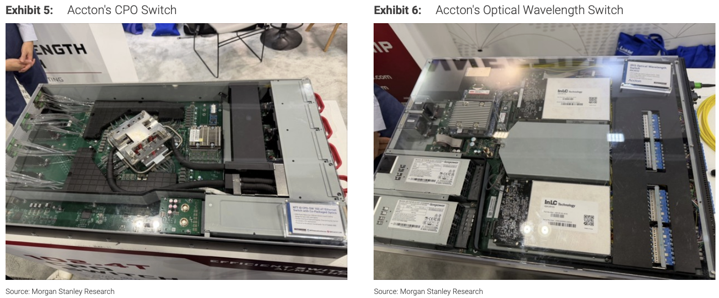 摩根士丹利认为,这些产品展示了Accton跨越不同技术架构提供交换机方案的综合能力——在市场对CPO采用及光路交换(Optical Circuit Switch)兴趣日益浓厚的背景下,这一能力具备差异化竞争价值。