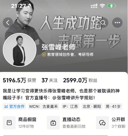稍早,网友发现张雪峰在社交平台的账号头像变为黑白。