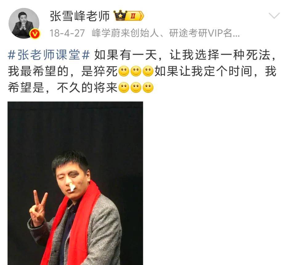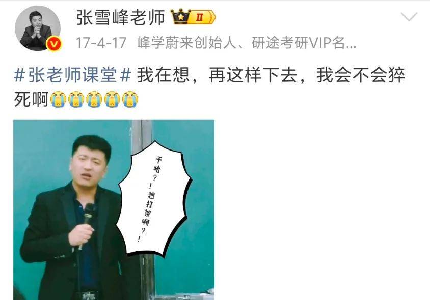 2021年,张雪峰公开喊话不怕猝死,评论区直接就沦陷了,热评第一条就是“你的每一条微博都可能成为遗言,保重身体!”