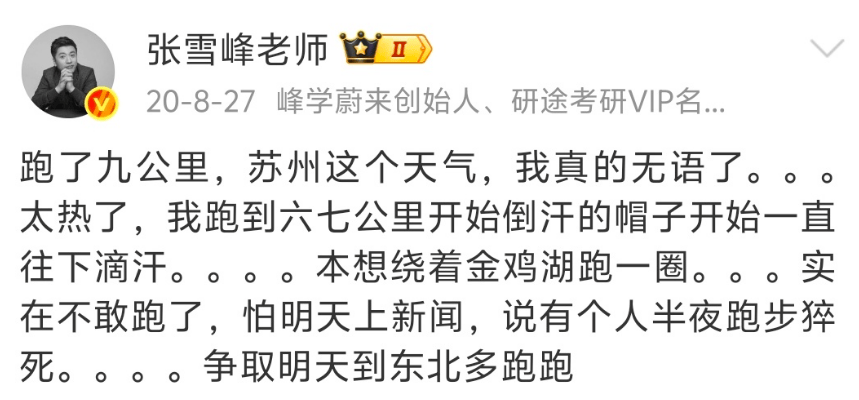 外界对张雪峰评价各异,但从他的微博看,他其实对自己生活状态心中有数。