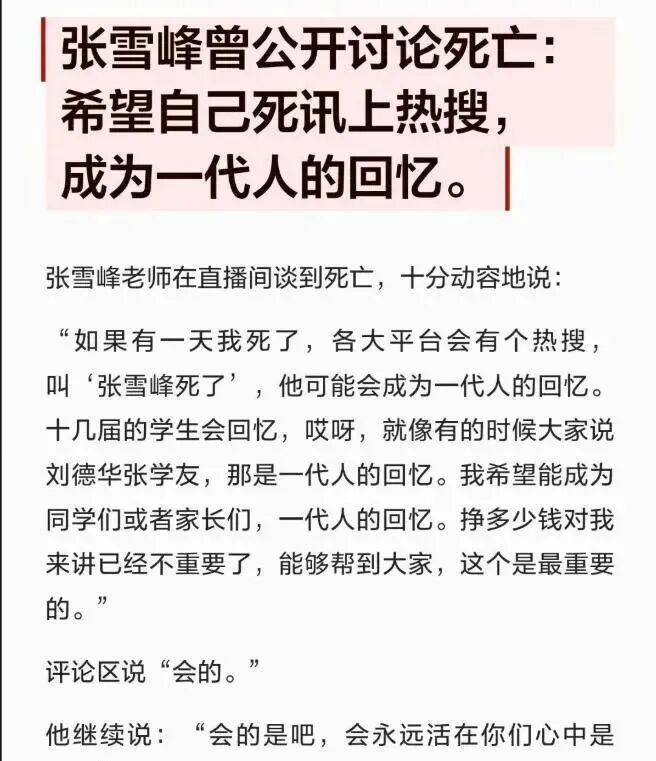 张雪峰走得太突然。