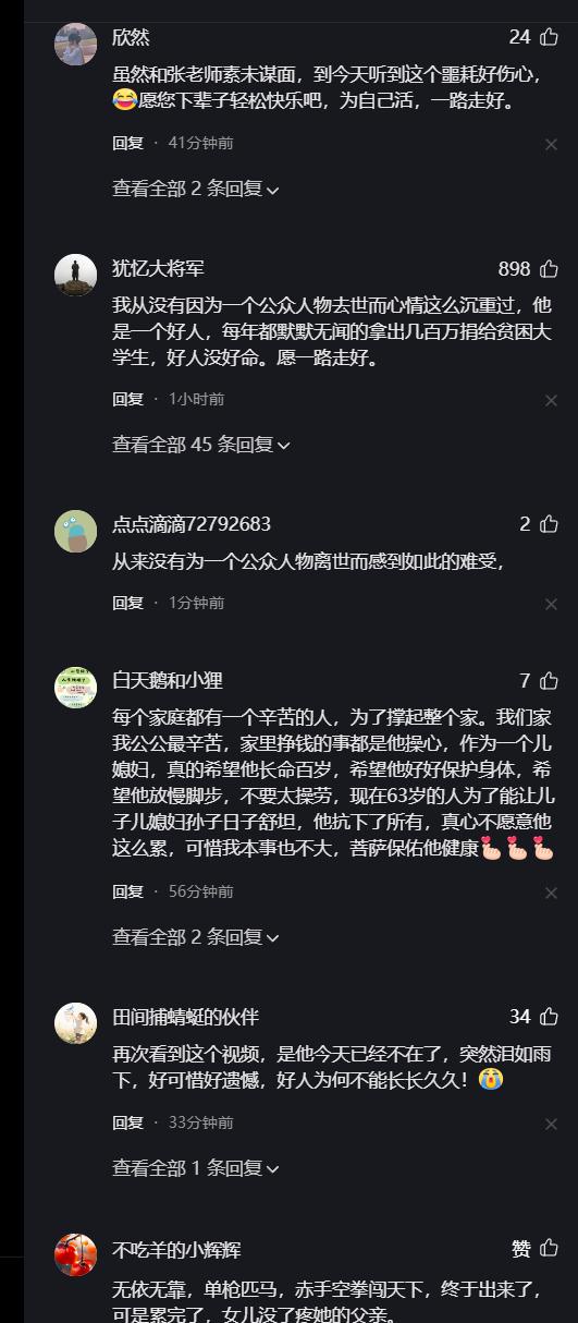 有网友再次翻看他这段讲述自己这么累的视频,不少人感觉心情沉重,有网友说:不知道怎么,心里闷闷的,上高中的时候总看他的直播切片,看他教怎么填志愿,苦口婆心的劝别人,辛苦了大半辈子大概也没享受到什么就走了,以后学生们想要去咨询志愿的事还能找谁呢?