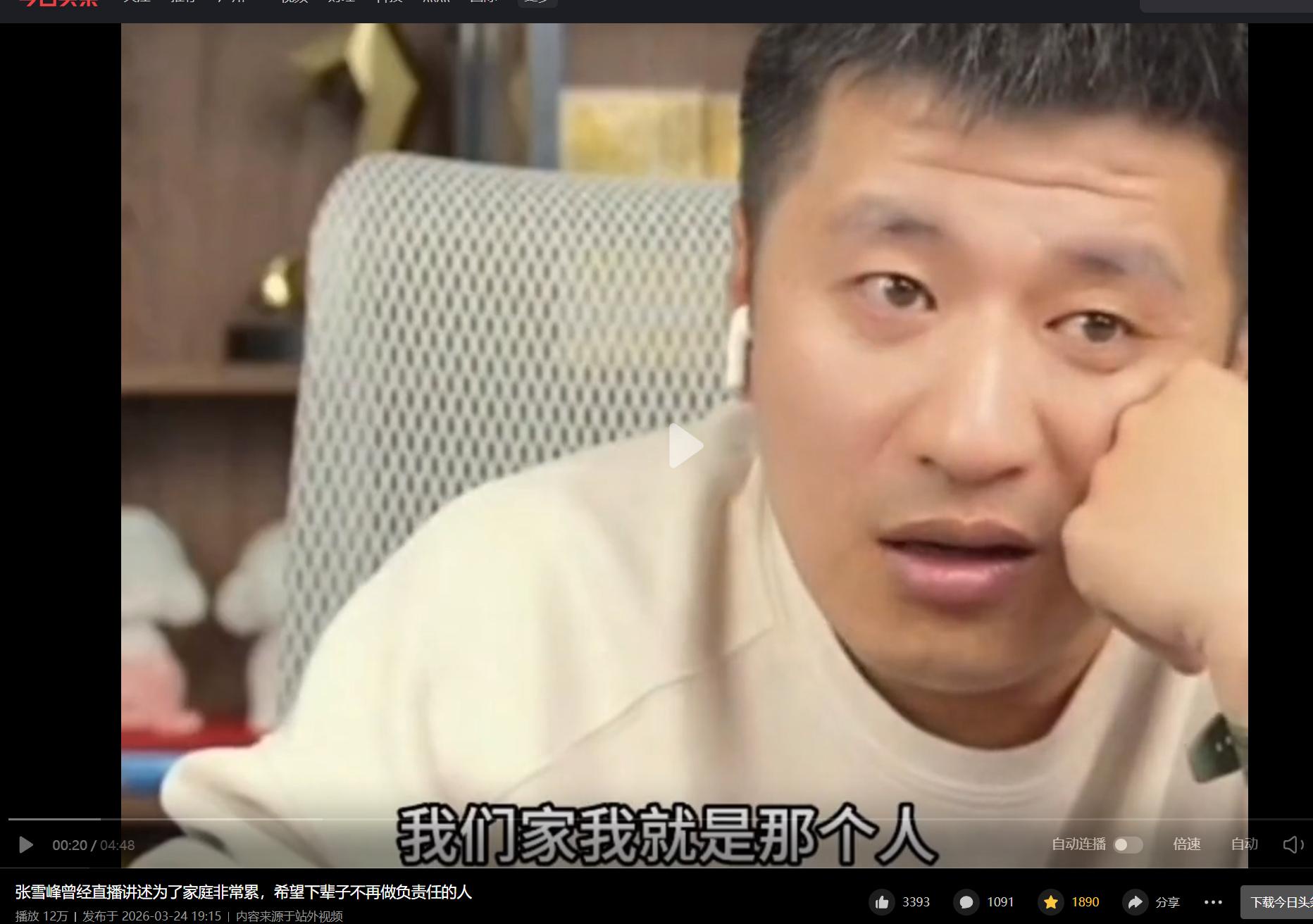 张雪峰曾经直播直言:在这个世界上,你会看到很多很多人,不用怎么工作,不用怎么努力,她就可以生活过得很好,不是因为她选择对了,而是因为她背后有一个非常强的人,在替她扛,我们家,我就是那个人。