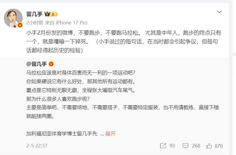 生命在于运动没错,但对于疲劳过度的中年人来说,生命在于静养,对于某些人来说,那不是自律,那是给自己递刀子。留几手说,不要跑步,不要跑马拉松。 尤其是中年人。