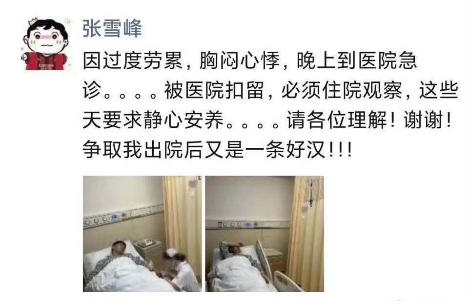 值得关注的是,张雪峰在2023年6月份,曾因为志愿填报工作累进医院,当时他发朋友圈表示,自己因为劳累过度,胸闷心悸,然后被医生要求住院。