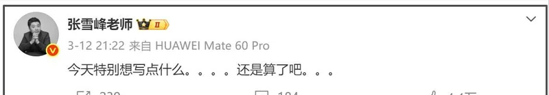 据多位网友爆料,张雪峰是3月24日中午在跑步机上突发心脏骤停,并就近送到了独墅湖医院,但送去时已经瞳孔放大,进ICU抢救也不容乐观。张雪峰生前最后一条微博,还发了一条不明所以的内容,说“特别想写点什么,还是算了吧。”当时评论区就有粉丝劝他多休息。