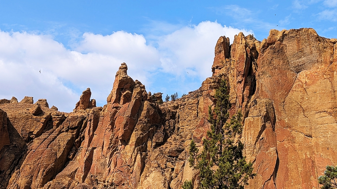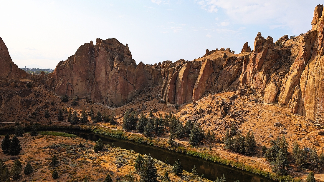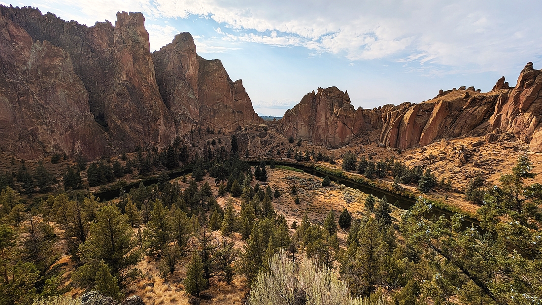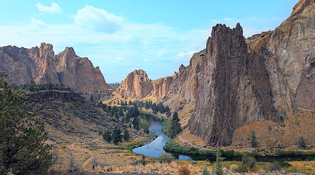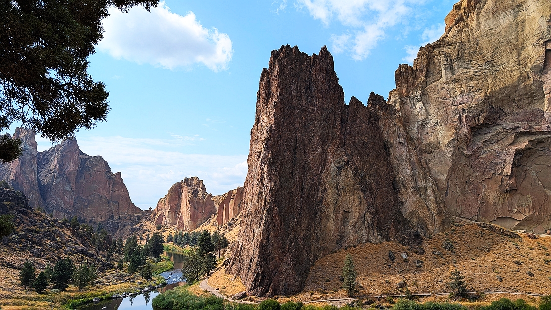 俄勒冈真是个岗,到处是山路。到达Smith Rock州立公园时已经1点半了。这个公园没有门票,只有停车费,州内居民10元,外州的12元,自己在机器上交钱。